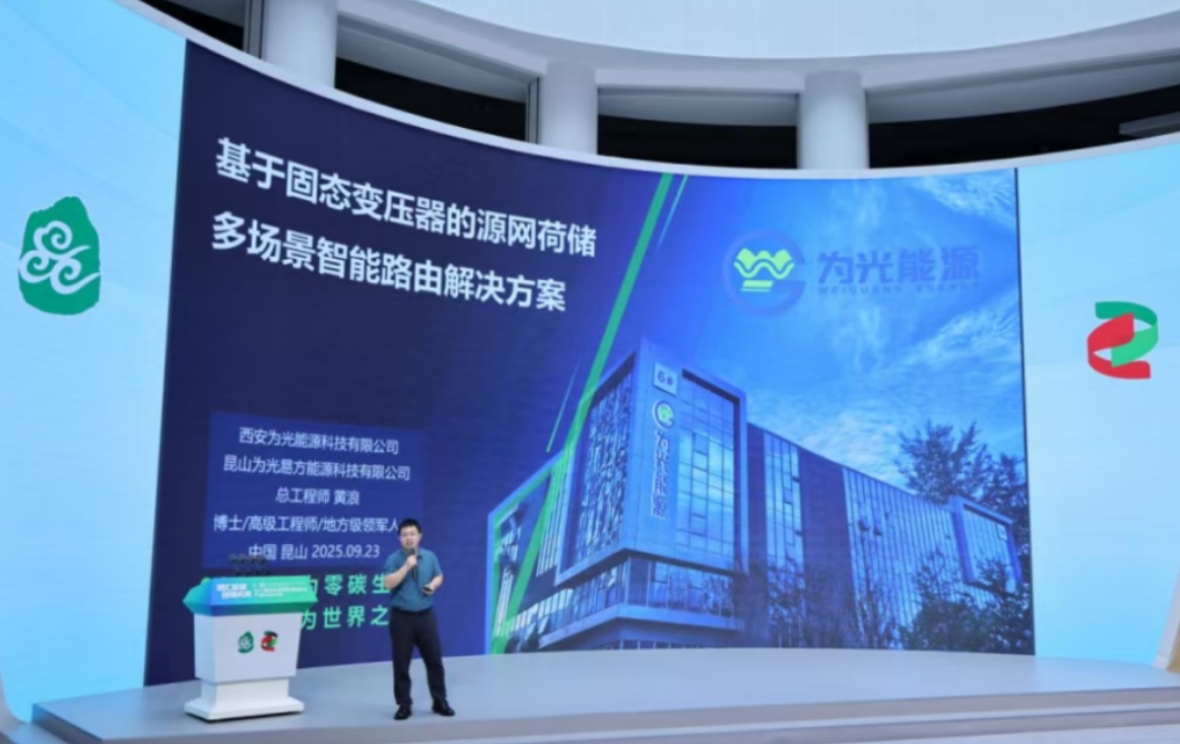 在大会核心环节之一的“双碳专场”中,为光能源总工程师黄浪博士发表题为《基于固态变压器的源网荷储多场景智能路由解决方案》的主题演讲,其中固态变压器技术作为方案核心支撑,成为全场关注焦点。